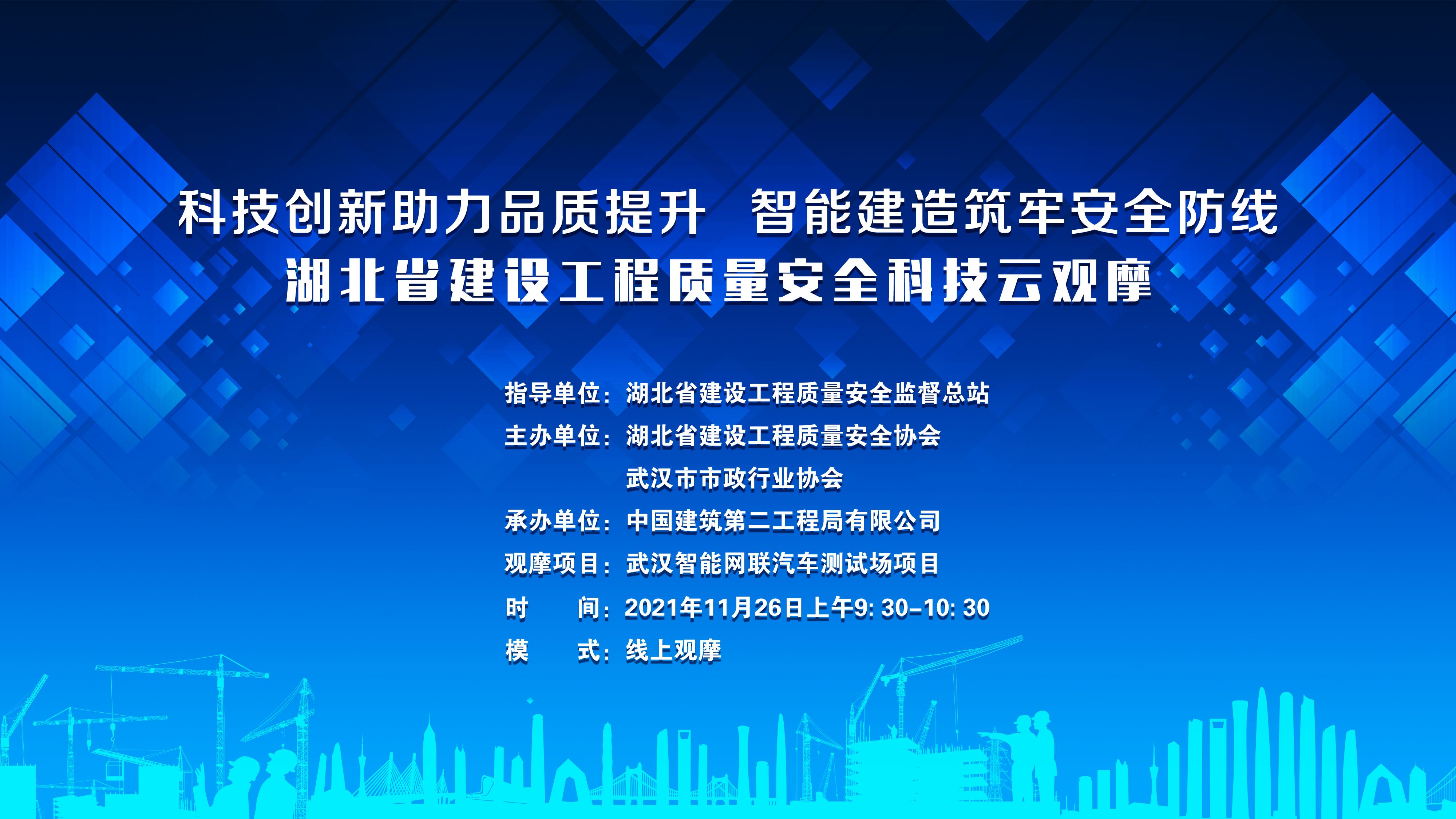 为进一步推进工程质量安全治理体系和治理能力建设,不断为建筑行业发展注入新鲜活力,在疫情防控常态化形势下,11月26日,由省质安总站指导,省质安协会主办的湖北省建筑工程质量安全科技云观摩活动在武汉智能网联汽车测试场项目举办,活动以“科技创新助力品质提升,智能建造筑牢安全防线”为主题,旨在通过以建筑施工安全为底线,以科技创新为支撑,助力建筑工程质量安全管理水平提升。