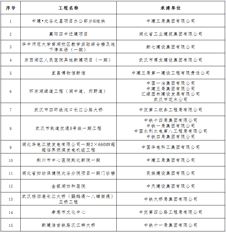 2020~2021年度中国建设工程鲁班奖(国家优质工程)名单【湖北省】