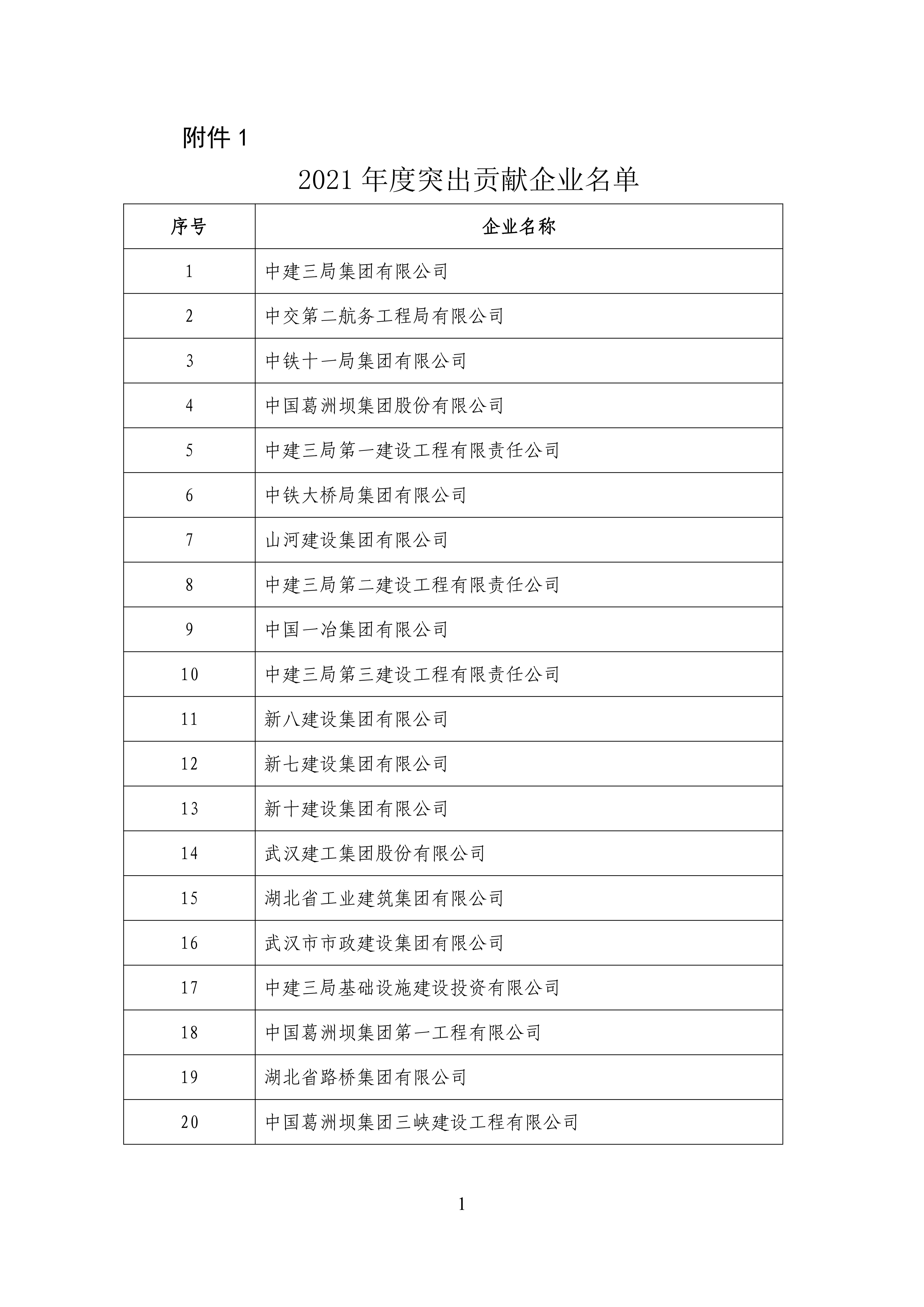 近日,省住房和城乡建设厅发布关于对2021年度优秀建筑业企业进行表扬的通报,省质安协会共有80家会员单位入选,其中,中建三局集团有限公司等20家会员企业入选突出贡献企业名单,中铁十一局集团第四工程有限公司等60家会员企业入选重要贡献企业名单。