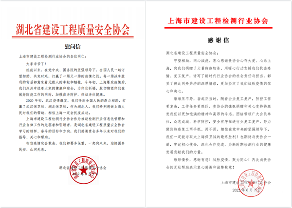 2022年4月,上海疫情爆发后,省质安协会特别牵挂上海市建设工程检测行协会各位同仁的身体健康,作为打赢了武汉保卫战、湖北保卫战的第一批战疫群体,我们对上海人民的经历感同身受。