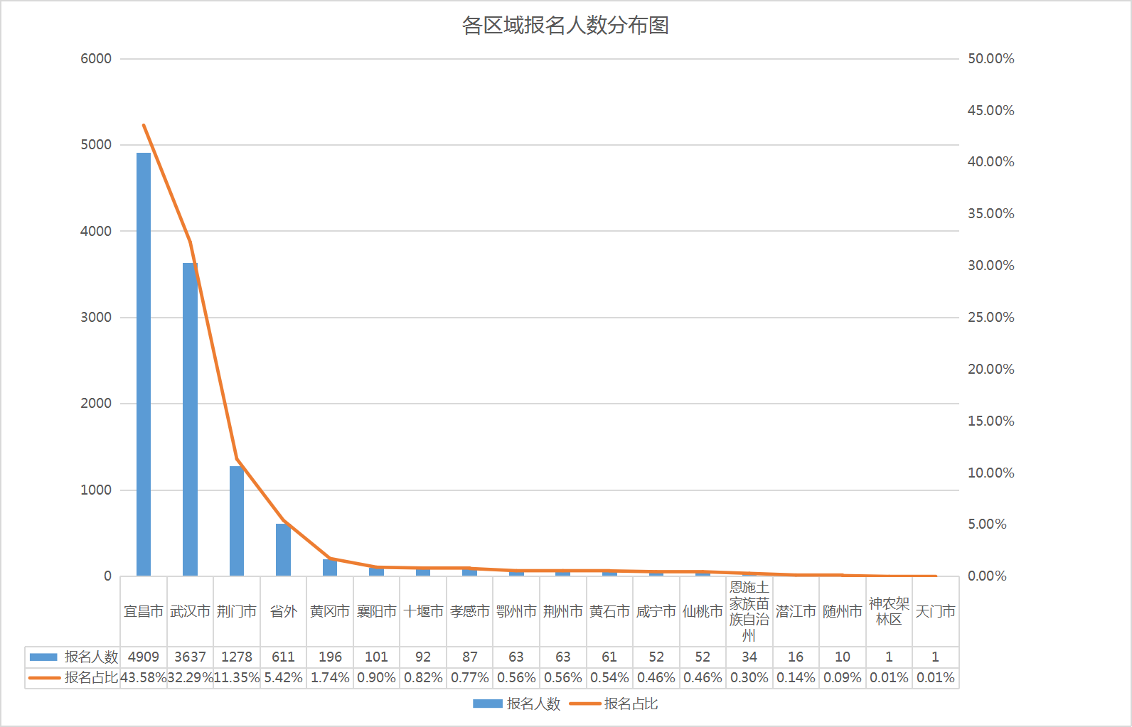 本次竞赛报名共计11264人,其中宜昌市4909人,武汉市3637人,荆门市1278人,黄冈市196人,襄阳市101人,十堰市92人,孝感市87人,鄂州市63人,荆州市63人,黄石市61人,咸宁市52人,仙桃市52人,恩施州34人,潜江市16人,随州市10人,神农架林区1人,天门市1人,省外611人。