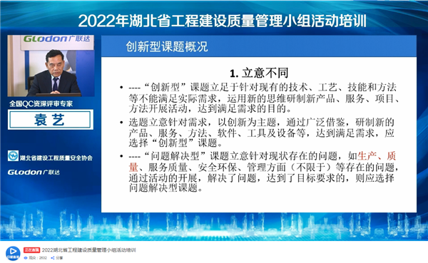 为进一步引导帮助我省施工企业扎实开展质量管理小组活动,培育更多的质量管理小组活动推进人才,促进工程建设质量管理小组活动持续、健康、深入、广泛地开展,10月24日,省质安协会联合广联达科技股份有限公司举办了2022年湖北省工程建设质量管理小组活动线上培训,各市(州)质量管理小组活动推荐单位相关负责人、行业专家、QC小组活动推进者及骨干约3000人参加了线上直播培训。