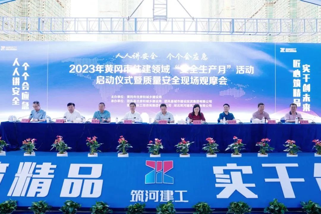 6月6日,2023年黄冈市住建领域“安全生产月”活动启动仪式暨质量安全现场观摩会在湖北筑河建筑工程有限公司承建的团风张家湾片区安置小区项目施工现场举行。