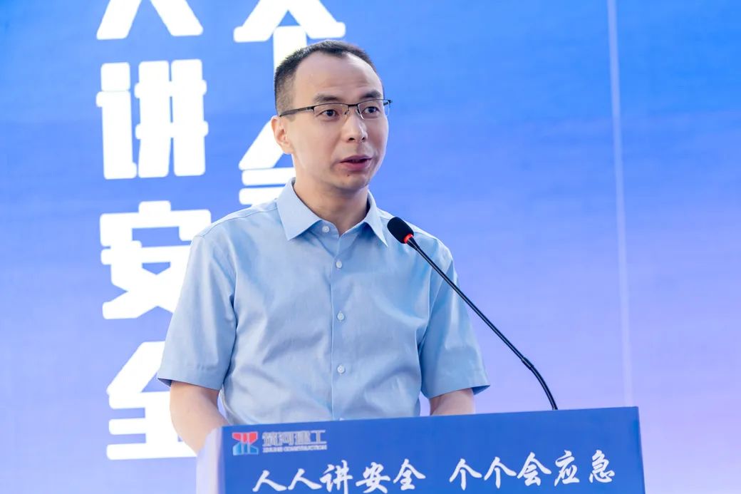 团风县城投集团党委书记、董事长漆鹏作为建设单位负责人,介绍了项目的质量安全管理经验。一是防患未然保安全,层层撒网、分级管理,常态化开展巡查巡视,消除安全隐患;二是严控质量保安全,强化红线意识和底线思维,夯实企业主体责任,提升质量安全管理水平;三是提升技能保安全,推动项目技术革新,优化质量安全管控,多措并举筑牢安全屏障。