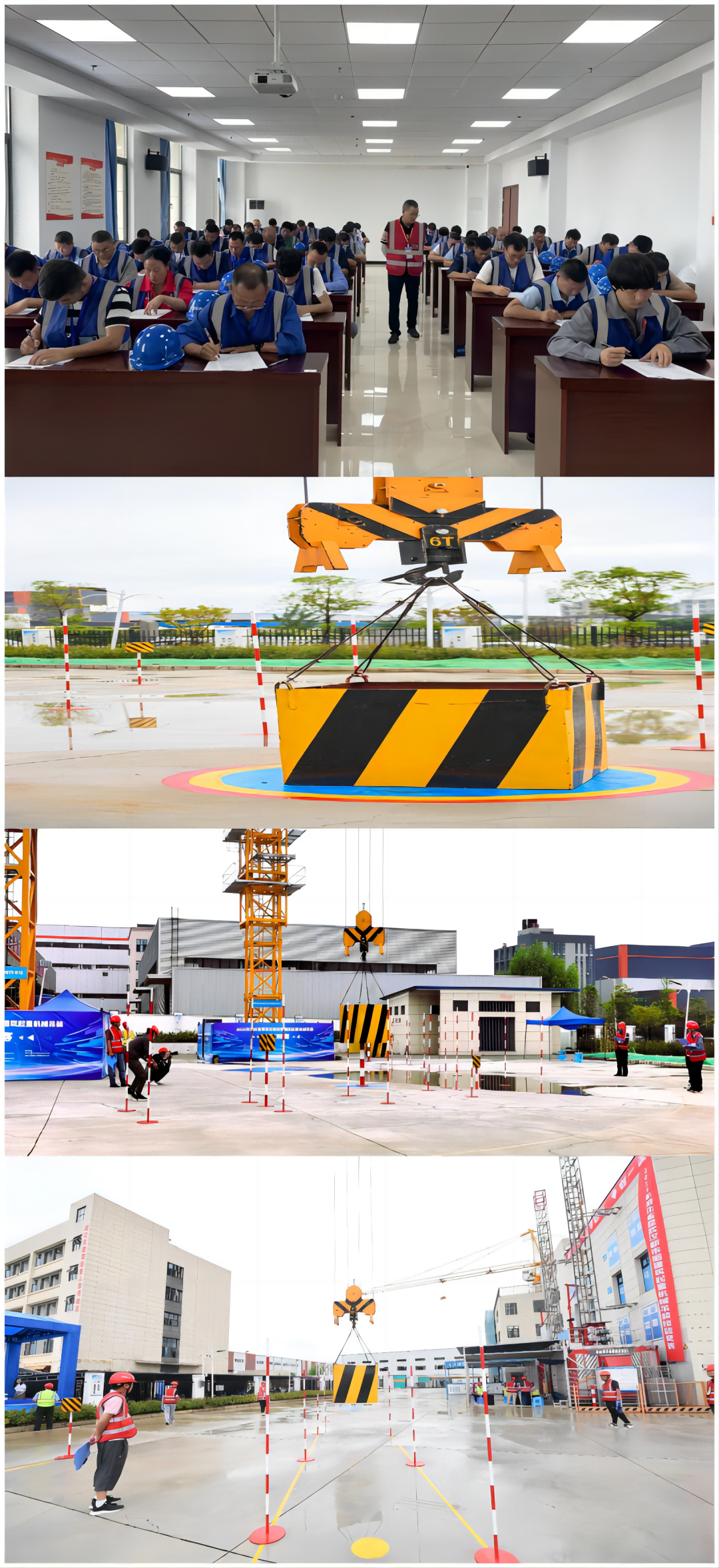 比赛现场,选手在高27米的平头塔机上,吊起盛有1立方米水的水箱,高空切磋“定点套杆”“定点停放”“杆道内运行”和“撞击标准物体”技艺,共展落点准、套杆稳、碰杆少、溢水少、用时短精湛技艺,完美展现了选手操作塔机“快、准、稳”吊装的综合能力,赛出了水平、赛出了风格。