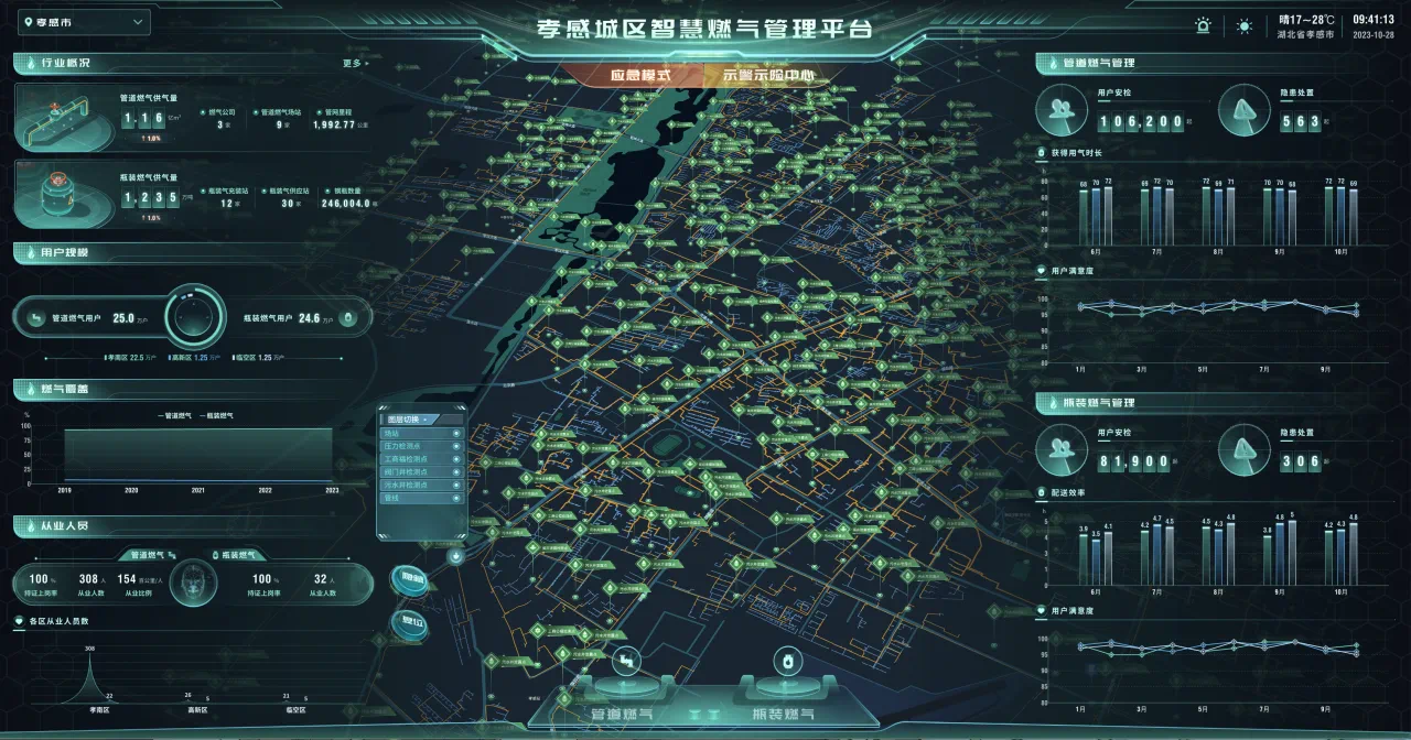 孝感城区智慧燃气项目建设项目于今年8月份正式开工,目前已完成工程量的85%,正在进行联调联试。
