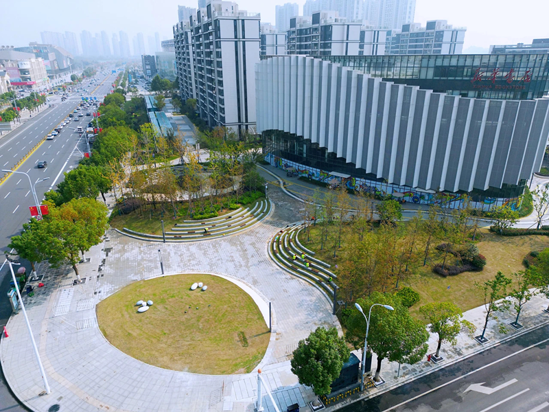 孝感市“城市客厅”示范区位于东城新区复兴大道,路段长度1.4公里,道路面积8.4万平方米,打造高品质城市公共环境,营造家的温馨,展现城的底蕴。