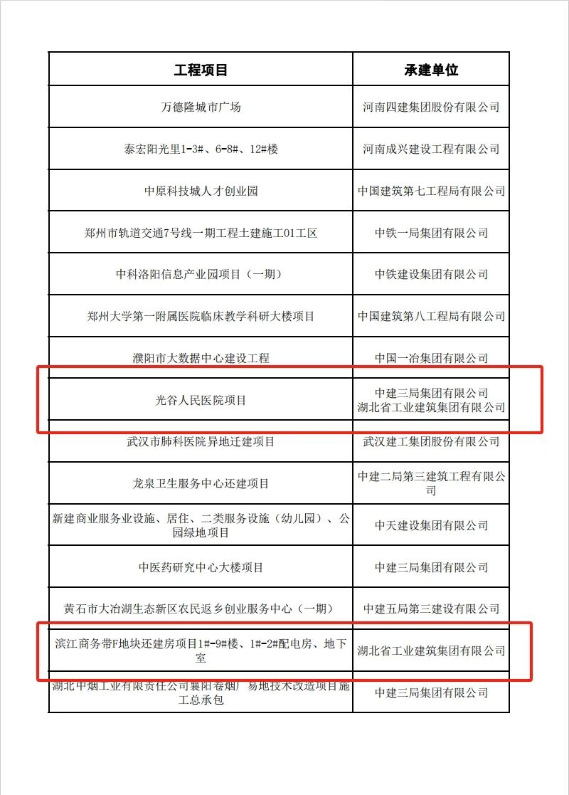 近日,中国建筑业协会建筑安全与机械分会发布《关于2023年建设工程项目施工工地安全生产标准化学习交流项目名单的公示》。由湖北工建承建的光谷人民医院、滨江商务带F地块还建房项目1#-9#楼、1#-2#配电房、地下室两个项目荣登名单。