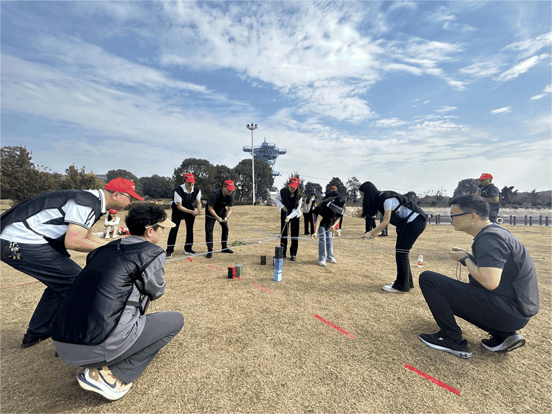 活动现场,开场热身活动就非同一般,在教练的指引下,大家捶一锤,拍一拍,喊口号,展风采,现场气氛被热烈地点燃。热身结束后,大家在教练的引导下分为三支队伍,以“协同配合、挖掘潜能、提升执行力”为目的,开展了团队破冰、步步高升、沙场点兵等拓展项目。活动场上热闹非凡,处处洋溢着欢声笑语,大家斗志昂扬、团结协作,加油声、呐喊声此起彼伏,通过明确的分工合作,团队相互配合,高效完成了拓展任务。