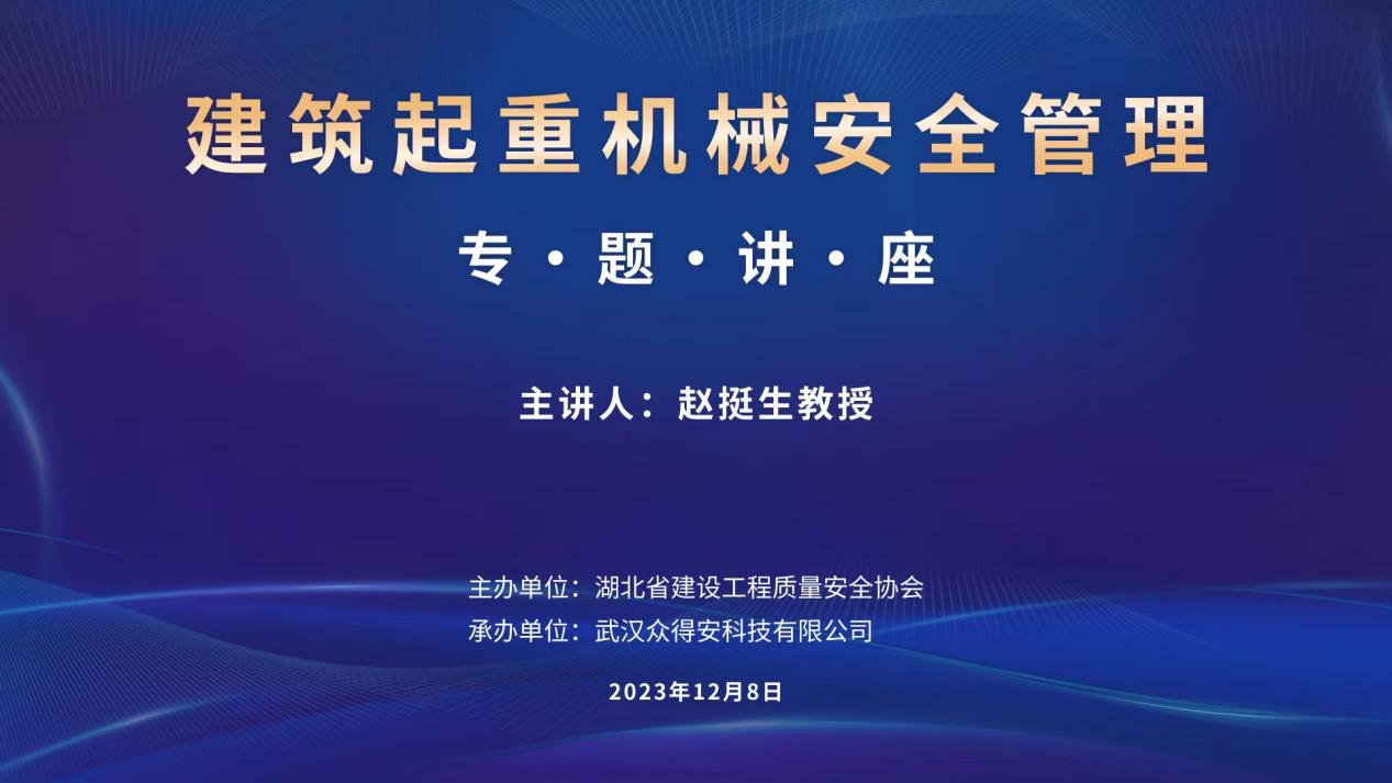 本次培训由华中科技大学土木与水利工程学院博士、华中科技大学教授、博士生导师赵挺生授课,培训内容涉及建筑起重机械作业中常见安全问题知识普及、建筑起重机械标准化作业流程讲解、建筑起重机械智能建造的应用场景、建筑起重机械安全管理的实例解析等四个方面,对提升建筑起重机械设备安全管理水平,提高社会公众安全意识,强化我省安全管理起到了积极作用。