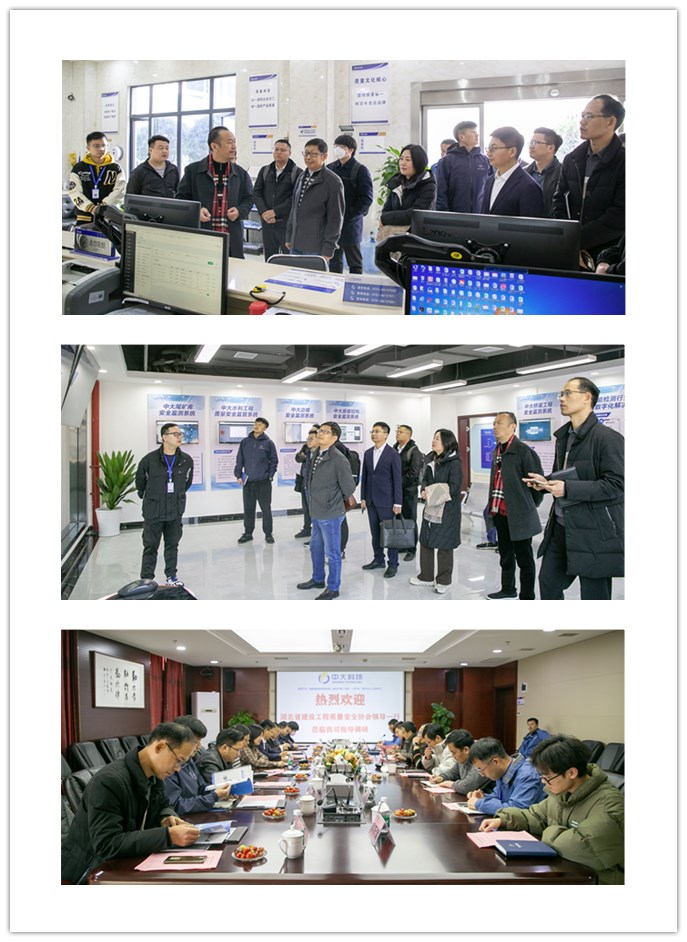 为深入探讨信息化、数字化和智能化技术在工程检测行业中的应用与实践,共享经验、激励创新,探讨行业未来的发展趋势,拥抱智能建造、城市体检、智慧城市等趋势带来的行业新机遇。湖北省质安协会组织湖北省建筑科学研究设计院股份有限公司总工刘士清、副总工陈庆敏,武汉市中心工程检测有限公司副总胡安、武汉华中科大检测科技有限公司肖宏笛博士、苏畅博士,武汉富思特创新信息技术有限公司常务副总谢玉超、武汉汇科质量检测有限责任公司城市安全事业部部长谭明、武汉中科岩土工程技术培训有限公司副总经理陈佳曦一行9人于12月7日——12月8日到中大智能科技股份有限公司(以下简称中大科技)、湖南联智科技股份有限公司(以下简称联智科技)考察交流。
