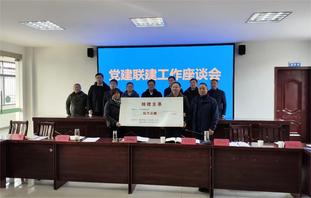 调研人员在省住建厅定点帮扶村古夫镇龙池村召开了党建联建工作座谈会,会上举行了现场捐赠仪式,由省质安总站联合省质安协会捐款5万元,用于支持龙池村基础设施建设。