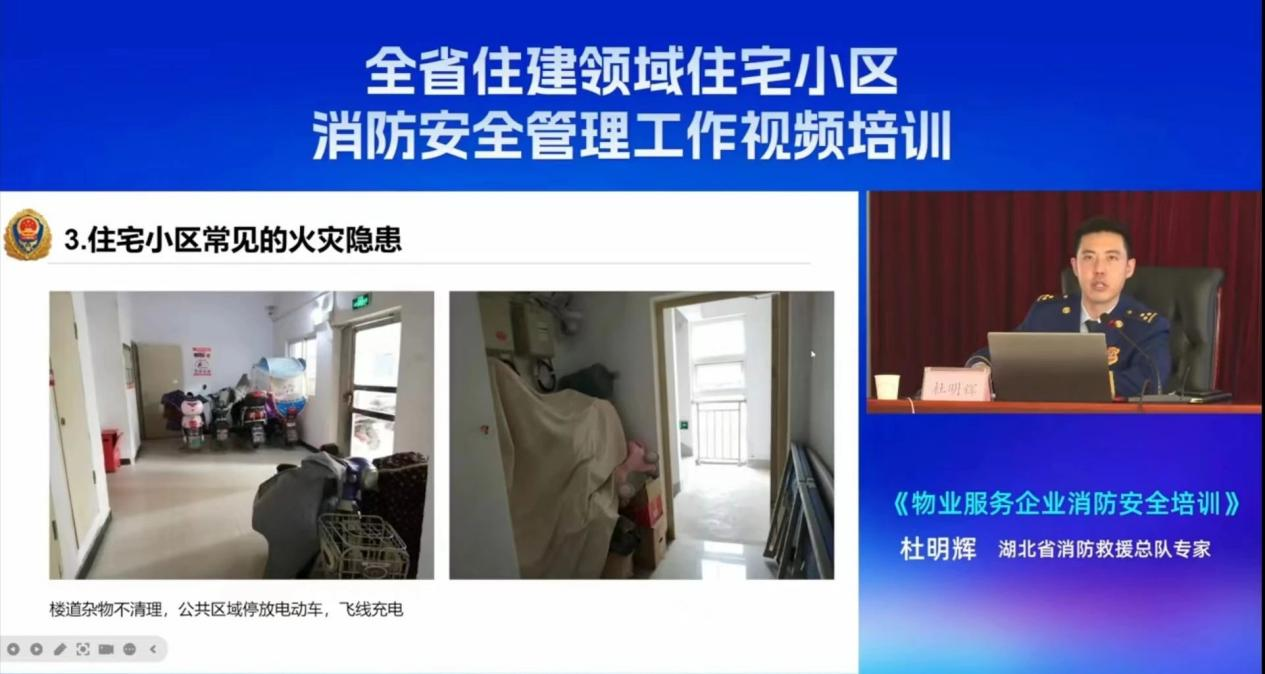 为推进落实《关于切实加强全省住建领域住宅小区消防安全管理的通知》要求,提升各地住建、城管、房管部门及相关技术服务机构、物业服务企业的履职能力,4月3日,由湖北省住房和城乡建设厅主办,湖北省房地产业协会、湖北省勘察设计协会、湖北省建设工程质量安全协会等单位协办的全省住建领域住宅小区消防安全管理工作视频培训顺利召开。培训采取视频加互联网直播的方式同步进行。厅党组成员、副厅长李晶杰出席并讲话。我会组织会员单位参加视频培训。