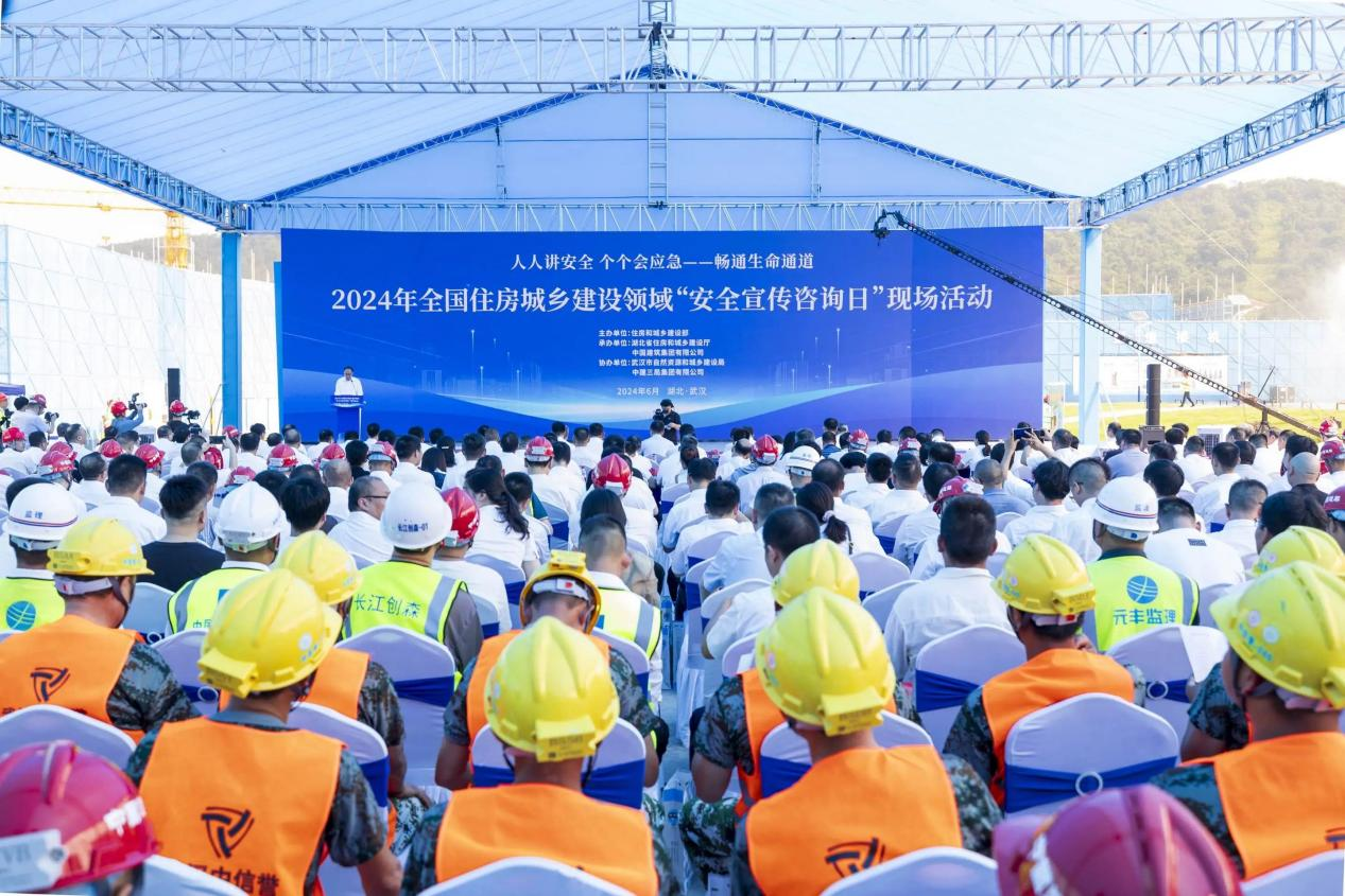 今年6月是第23个全国“安全生产月”,主题为“人人讲安全、个个会应急—畅通生命通道”。6月14日,住房城乡建设部在湖北省武汉市光谷国际社区一标段工程项目举行全国住房城乡建设领域“安全宣传咨询日”现场活动。住房城乡建设部党组成员、副部长王晖,湖北省副省长张文彤出席并讲话;中建集团党组副书记、总经理文兵致辞;住房城乡建设部总工程师江小群主持活动。