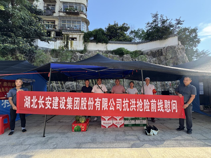 7月5日下午,烈日当空。为了做好防汛抗洪工作,保护人民生命财产安全,发挥驻地企业的社会责任担当,集团公司黄石市煤炭矿务局职工医院新建医院综合楼项目负责人华小军经理不辞辛苦,冒着高温酷暑带领项目部管理人员前往八泉街道抗洪抢险突击队长江干堤驻地,向奋战在抗洪抢险一线的干部、群众以及志愿者们进行慰问,并捐赠一批防暑降温物品及防汛物资。