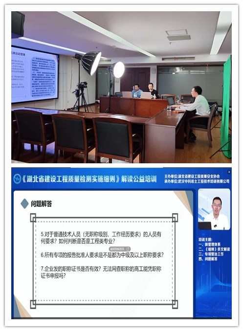 为进一步促进检测机构知晓相关规定和要求,明确自身责任,规范检测行为,切实维护全省检测市场秩序,保障新旧检测资质平稳有序过渡。在省质安总站指导下,省质安协会于10月24日组织了《湖北省建设工程质量检测实施细则》(以下简称《实施细则》)解读公益培训,邀请省质安总站质量监督科雷鸣进行线上培训解读。