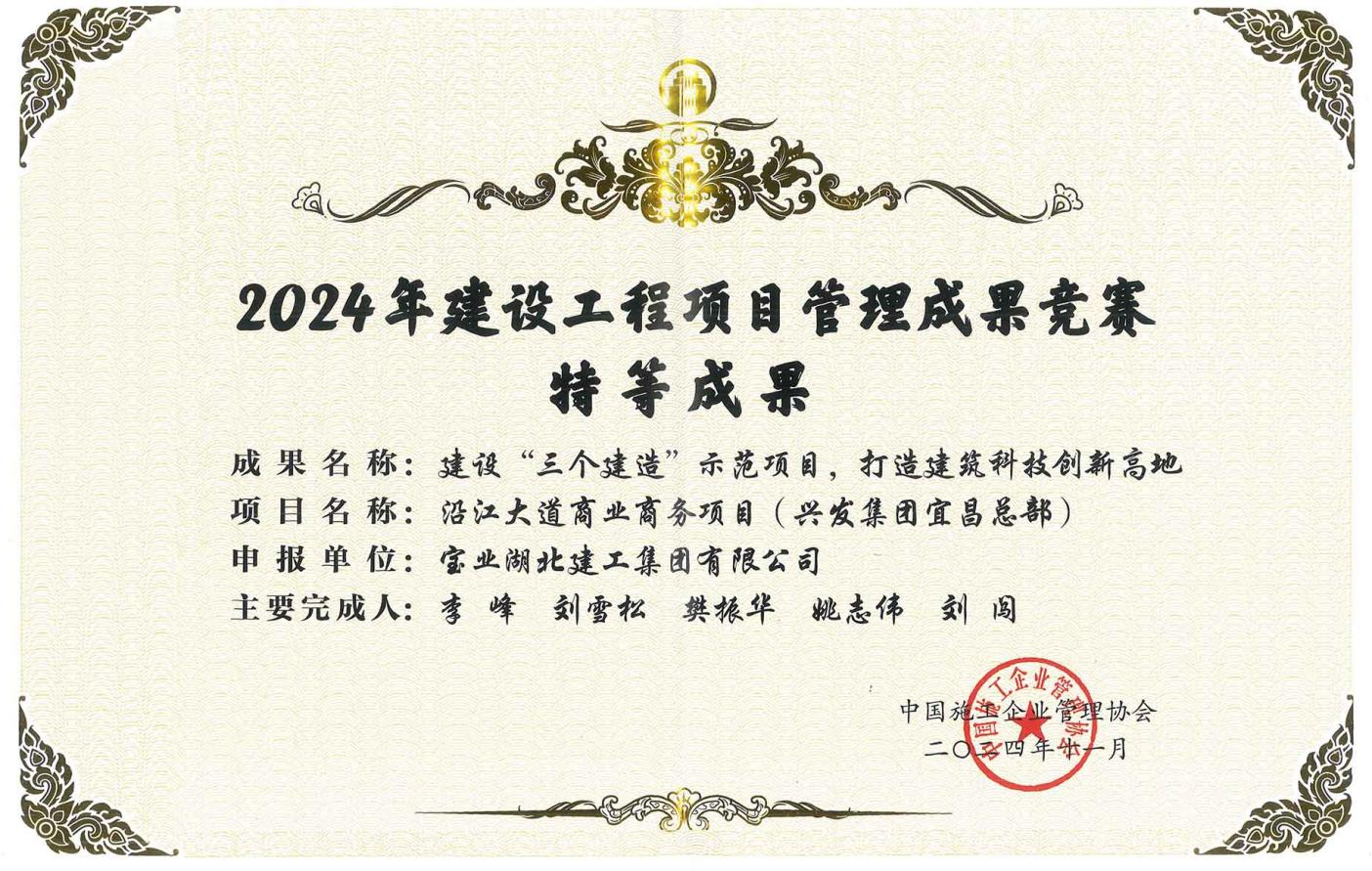 主题交流环节,中国交通建设股份有限公司谷世平作了题为《中国交建高质量项目管理体系及系统建设》的报告;中铁十二局党委书记、董事长李天胜作了题为《以效率效益绩效为导向全面提升项目管控效能》的报告;中建五局副总经理蒋琪作了题为《大履约体系的实践与探索》的报告;湖南建投副总经理、首席质量官陈浩作了题为《用“创全优工程”管理体系践行“好房子”战略目标》的报告。会上,还发布了各企业申报的2024年建设工程项目管理成果竞赛结果。我会推荐的11个项目管理成果榜上有名,获得特等成果1个,一等成果2个,二等成果8个。其中,宝业湖北建工集团有限公司沿江大道商业商务项目(兴发集团宜昌总部)《建设“三个建造”示范项目,绿色建造精益求精》获得特等成果;中建五局第三建设有限公司武汉大学医学部9号科研大楼《绿色建造精益求精,打造精品科研大楼》及新建居住、绿地与广场项目(汉阳区四新方岛地区 A4 地块)《非全混凝土外墙装配式快速建造》获得一等成果;湖北联诺建设有限公司当阳市人民医院重大疫情防控救治基地《EPC建设项目推行精益建造,提升企业核心竞争力》、中国一冶集团有限公司荆门市东宝区文体中心工程《践行全寿命周期管理 打造荆门文体新天地》、武汉城投瀚城置业有限公司居住项目(城投香恋)《精细化管理为项目开发赋能》、 中国市政工程中南设计研究总院有限公司宁波江北区下沉式再生水厂(一 期)项目工程总承包(EPC)《空间置换,资源利用,打造绿色低碳典范工程》、武汉建工集团股份有限公司武汉儿童医院妇幼综合大楼项目《中心城区狭小场地工程建设中的精细化管理》、中交一航局第二工程有限公司新建商业服务业设施项目(湖北金控大廈)办公楼《基于EPC总承包模式的精益建造实施》、中国市政工程中南设计研究总院有限公司漳浦县赤湖工业园污水处理厂尾水深海排放工程 EPC 项目《技术引领,高效管理,打造精品深海排放工程》、中建三局第三建设工程有限责任公司长江大学文理学院新校区《EPC 模式下的学校类建筑屋面优化经验探讨》8个项目成果均获得二等成果。
