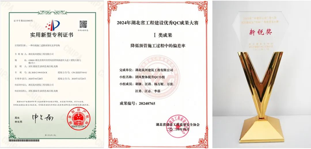 筑河建工深入贯彻新发展理念,深挖创新潜力,积极推动在建项目应用新工艺、新工法、新材料,联合高校、科研院所开展产学研合作,打造高效人才团队,改进关键技术工艺,提高项目建造水平,先后取得多项国家实用新型专利、全国及省市级荣誉成果。