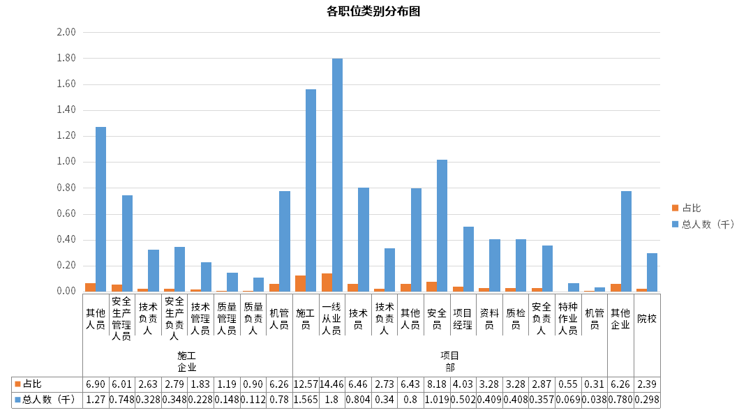 12451人报名参赛,其中施工企业:安全生产管理人员748人、技术负责人328人、安全生产负责人348人、技术管理人员228人、质量管理人员148人、质量负责人112人、机管人员78人、其他人员1272人;项目部:施工员1565人、一线从业人员1800人、技术员804人、安全员1019人、项目经理502人、资料员409人、技术负责人340人、质检员408人、安全负责人357人、特种作业人员69人、机管员38人、其他人员800人;院校:298;其他企业780人。