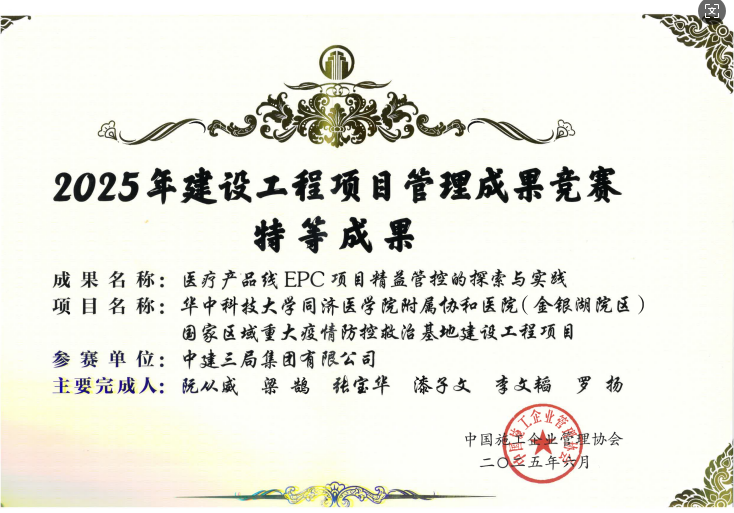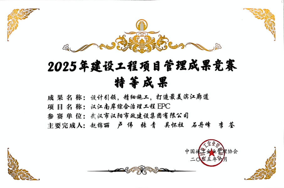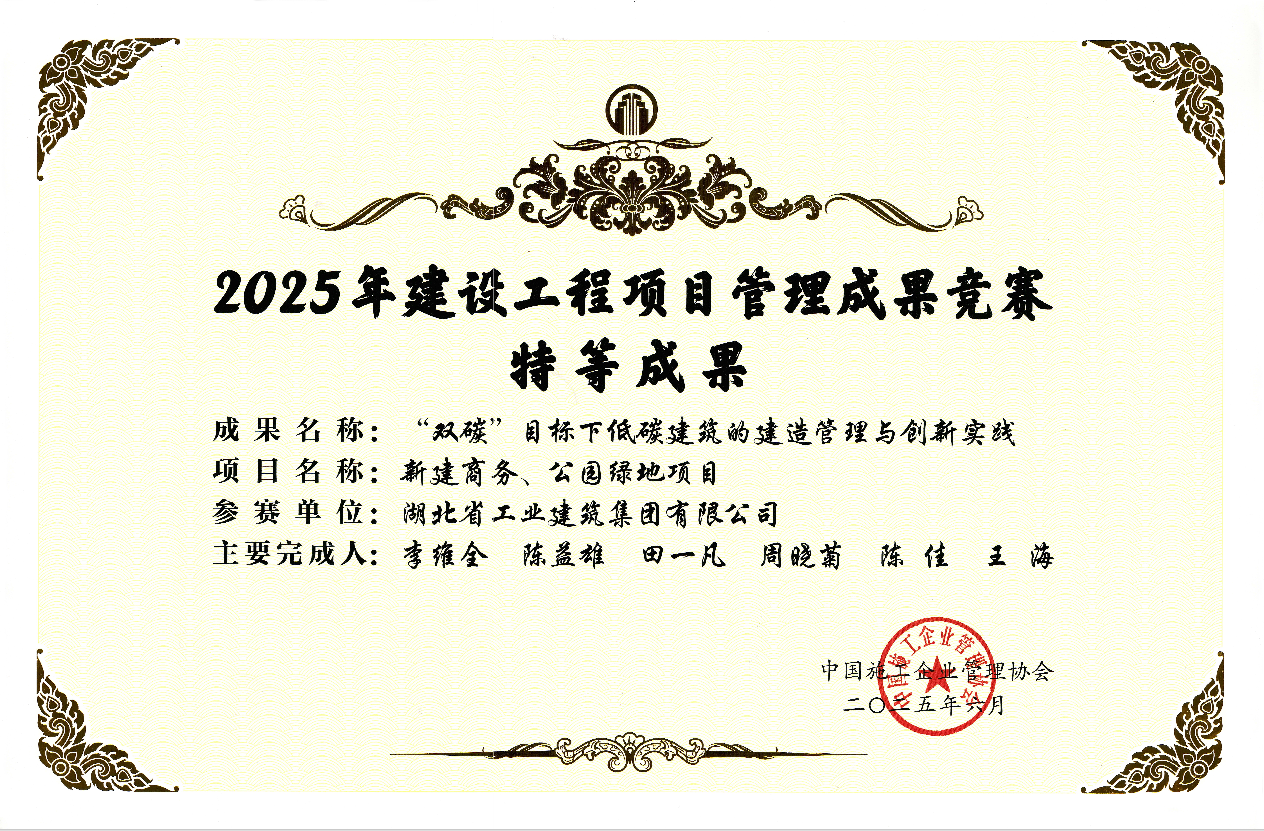 会议期间,发布了2025年建设工程项目管理成果获奖名单。我会推荐的32个项目管理成果成功入选,获得特等成果3个、一等成果8个、二等成果21个,荣获特等成果的是:中建三局集团有限公司的华中科技大学同济医学院附属协和医院(金银湖院区)国家区域重大疫情防控救治基地建设工程项目《医疗产品线EPC项目精益管控的探索与实践》、湖北省工业建筑集团有限公司的新建商务、公园绿地项目《双碳目标下低碳建筑的建造管理与创新实践》、武汉市汉阳市政建设集团有限公司的汉江南岸综合治理工程EPC《设计引领 精细施工 打造最美滨江廊道》。