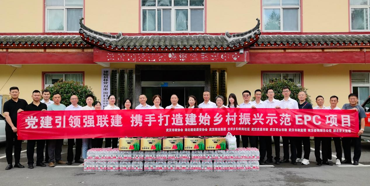 为深入贯彻党中央关于“强化党建引领乡村振兴”精神,积极响应省委关于“支点建设”的战略规划,充分发挥党建引领作用,整合多方资源,凝聚强大合力,推动党建工作与乡村振兴深度融合,为乡村发展注入新动力,助力乡村全面振兴。8月22日,省质安协会联合武汉市市政行业协会、武汉致远建设集团有限公司、建始县龙坪乡长岭岗社区等9个党组织,在恩施州建始县乡村振兴示范项目EPC工地及建始县龙坪乡长岭岗社区开展"党建引领聚合力 同心共筑乡村兴"主题党日联建活动。