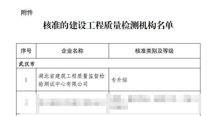 9月17日,湖北省住房和城乡建设厅发布《关于核准的建设工程质量检测机构名单的公告》(鄂建审告〔2025〕365 号),名单中湖北省建筑科学研究设计院股份有限公司子公司湖北省建筑工程质量监督检验测试中心有限公司(以下简称“省检测中心”)核准类别及等级为“专升综”,这标志着省检测中心成为湖北省首家通过建设工程质量检测机构综合资质核准的检测机构!