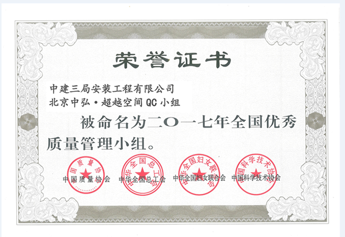 近日,随着中国质量协会QC成果交流会圆满结束,会员单位中建三局安装工程有限公司传来喜讯,经湖北省建设工程质量安全协会推荐“北京中弘·超越空间QC小组”的课题“提高异形空间节点安装一次合格率”荣获中国质量管理小组最高等级的“全国优秀质量管理小组”。该公司2017年范围内组织成立QC小组15个,开展课题10个, QC小组普及率由2014年的5%上升到38%,2017年湖北省工程建设QC小组活动优秀成果6项,中国建筑业协会优秀成果2项,中国施工企业协会优秀成果一项。