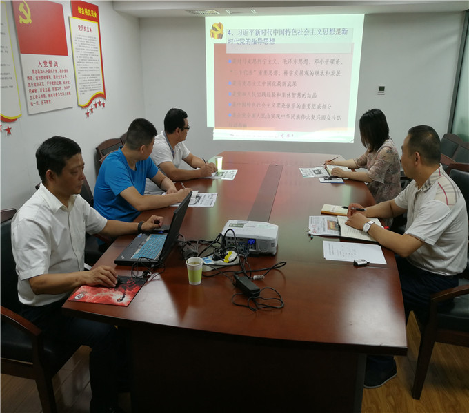 支部委员谢志勇作了《中国共产党指导思想和纲领》专题报告。报告围绕习近平新时代中国特色社会主义思想的历史地位、形成的主客观条件、基本内涵以及主要特点四个方面,详细地介绍了习近平新时代中国特色社会主义思想的形成过程,揭示了其重大理论意义和实践意义。