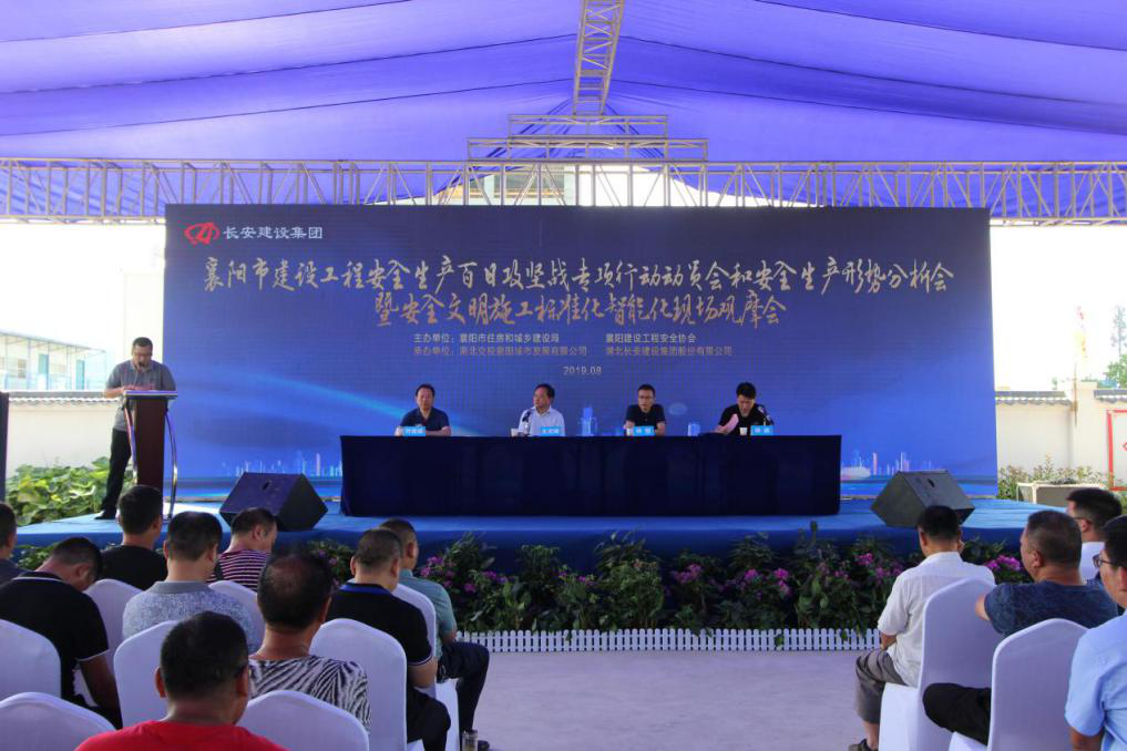 8月13日上午,骄阳似火,高温不减。由襄阳市住房和城乡建设局、襄阳建设工程安全协会主办,湖北交投襄阳城市发展有限公司、湖北长安建设集团股份有限公司承办的襄阳市建设工程安全生产百日攻坚战和安全生产形势分析会暨安全文明施工标准化智能化现场观摩会,在湖北交投襄阳发展中心施工现场圆满召开。襄阳市住房和城乡建设局党组成员、副局长王文峰,湖北长安建设集团股份有限公司党委副书记、总经理叶发保,湖北交投襄阳城市发展有限公司总经理林恒出席会议并先后讲话。湖北长安建设集团股份有限公司总工程师李智威作经验交流发言,襄阳建设工程安全协会副会长林森主持会议。襄阳市建筑起重机械一体化行业协会、襄阳市模架一体化协会会长和襄阳市建设工程安全专家库专家,以及襄阳各县(市、区)、各城区建设局和业务科室的负责人及全市二级安全监督机构负责人、市区中心城区房屋建筑工地、装饰装修工地、市政基础设施工地和来自各县(市、区)、各城区创优工地的代表计600余人参加此次观摩会。