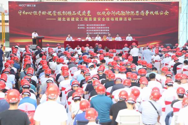 8月21日上午,湖北省建设工程质量安全现场观摩会在武汉宜科大厦项目召开。本次活动以“守初心、推手册、促管控、创精品、提质量,担使命、防风险、除隐患、遏事故、保安全”为主题,旨在扎实推进《工程质量安全手册》(以下称《手册》),提高全省房屋建筑和市政工程质量安全管理水平。宜科大厦工程建设单位为湖北宜化科技发展有限公司,施工单位为湖北省工业建筑集团有限公司,该工程是湖北工建全面推进《手册》的重点示范项目。