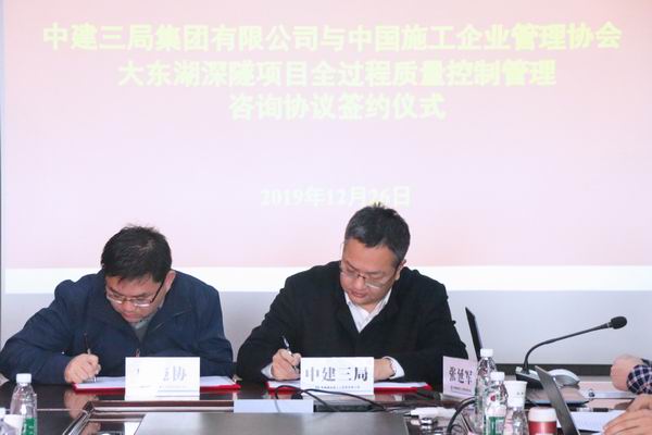 全过程质量控制管理咨询切实体现了中国施工企业管理协会服务企业、服务行业的理念,是极具特色的有效举措。会上,张宇翔介绍了中施企协全过程质量控制管理咨询工作的基本情况,中建三局通过视频和PPT对项目进行了汇报,张宇翔与大东湖深隧项目公司总经理阮超作为签约代表,签署了全过程质量控制管理咨询协议书。