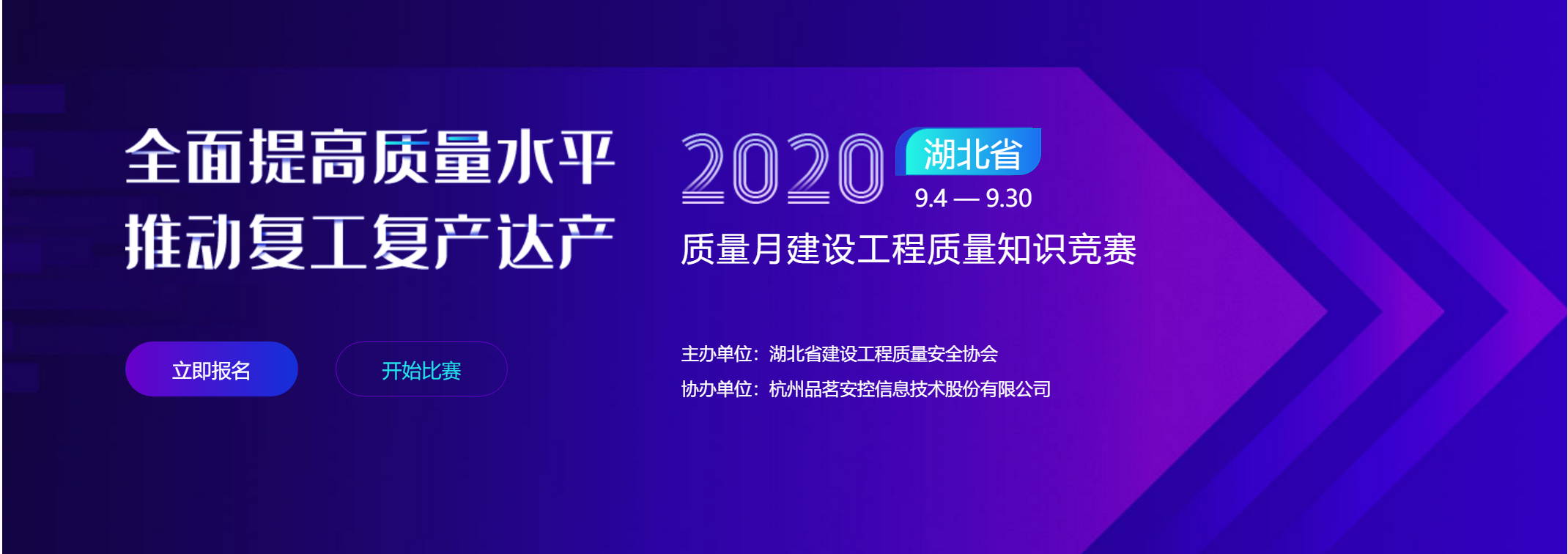 为营造人人关心质量、重视质量、追求质量、创造质量、享受质量的良好社会氛围,在全国第33个“质量月”之际,省质安协会举办了以“全面提高质量水平·推动复工复产达产”为主题的2020年度湖北省“质量月”建设工程质量知识竞赛。