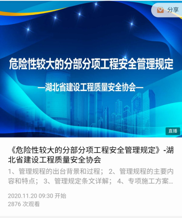 为进一步加强我省安全生产工作,提升建设工程项目管理人员安全理论知识水平及管理技能,有效防范住建领域安全事故发生,11月20日,省建设工程质量安全协会举办了一期建筑工程安全生产管理线上培训。部分市(州)建设工程安全监督站有关人员和我省施工企业安全生产管理人员近3000人参加了培训。