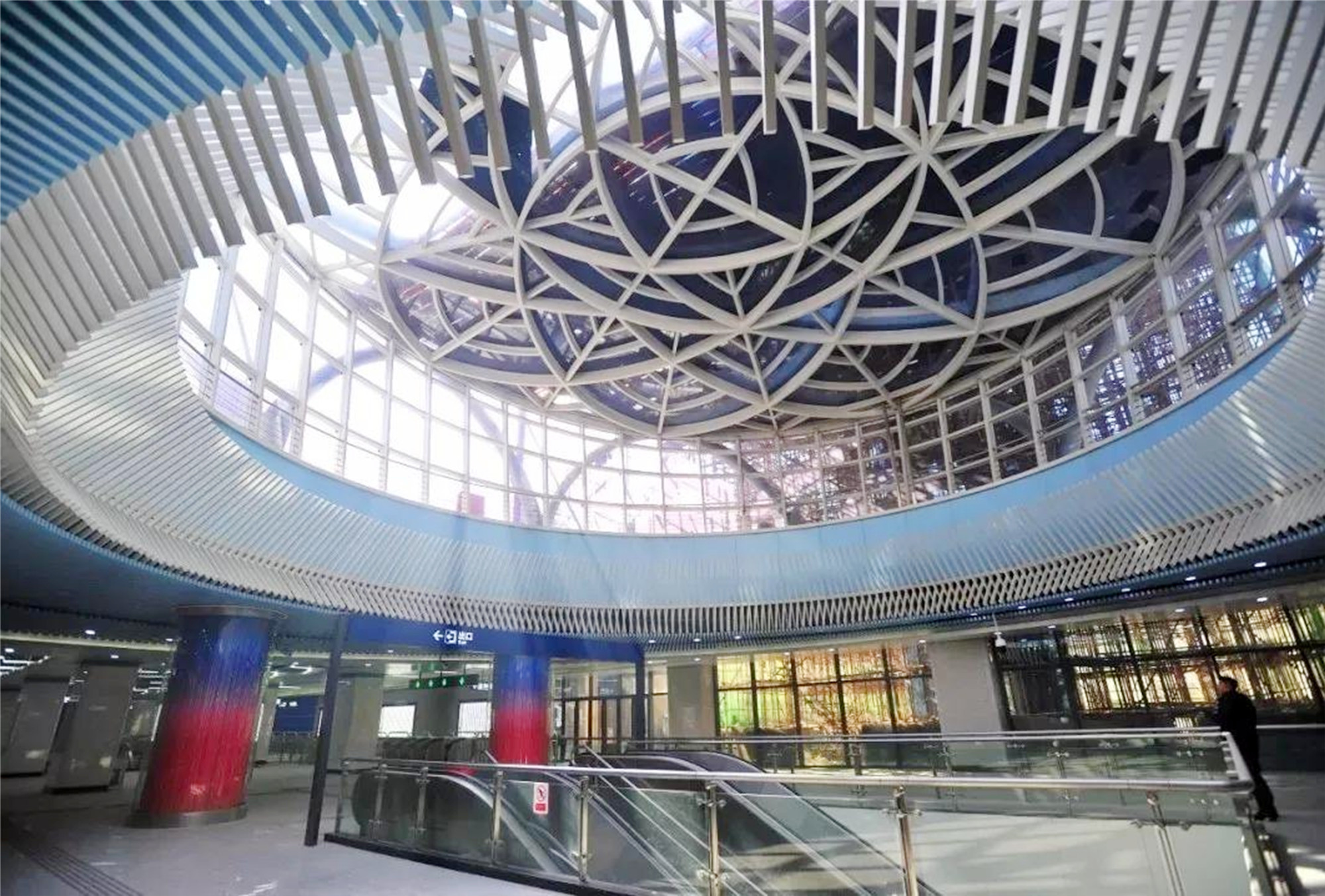 乘坐8号线地铁列车,穿越长江,列车行驶在直径12米多、4层楼高的隧道里,宛如穿行一座地下宫殿,仅用3分钟。