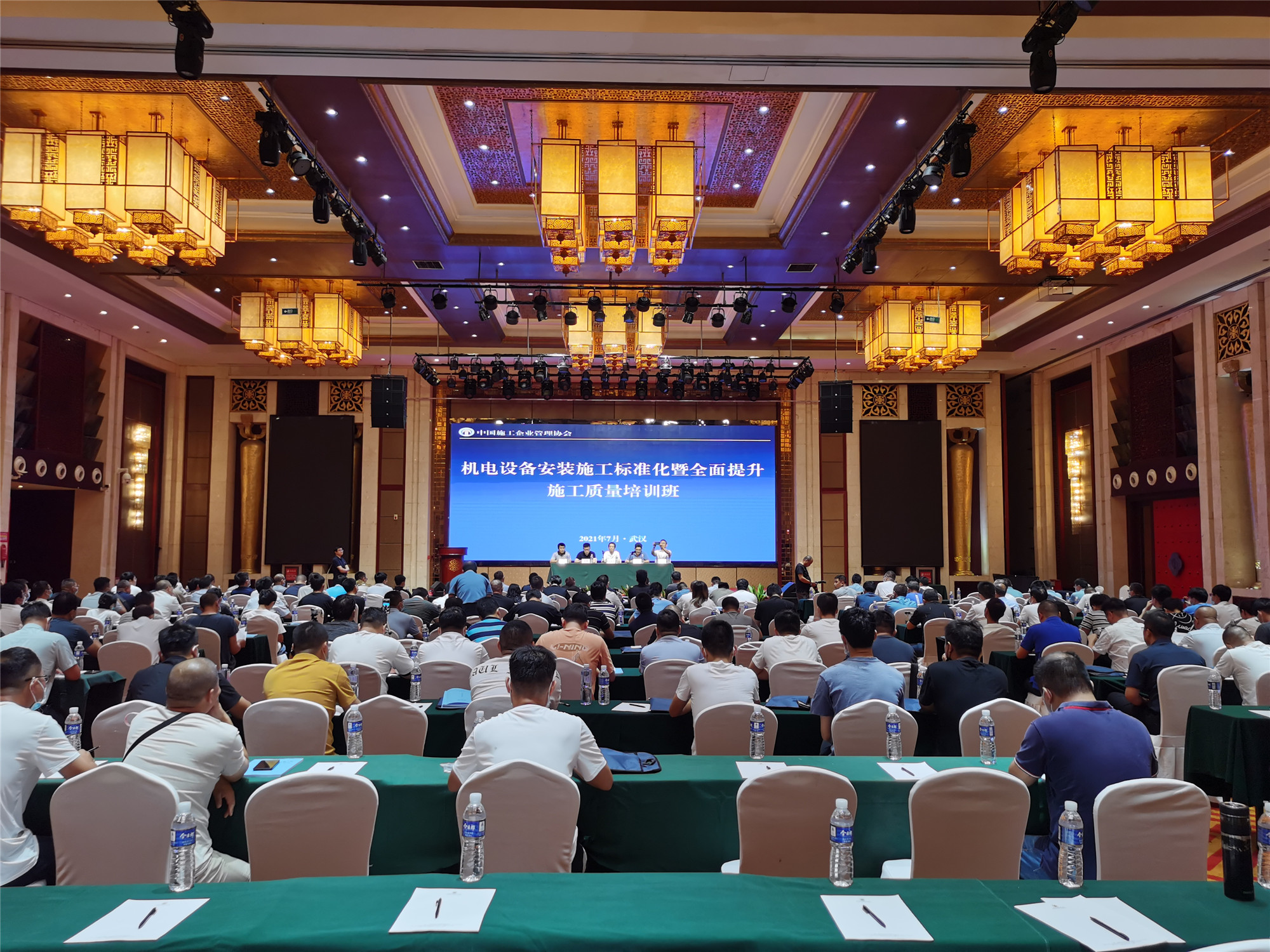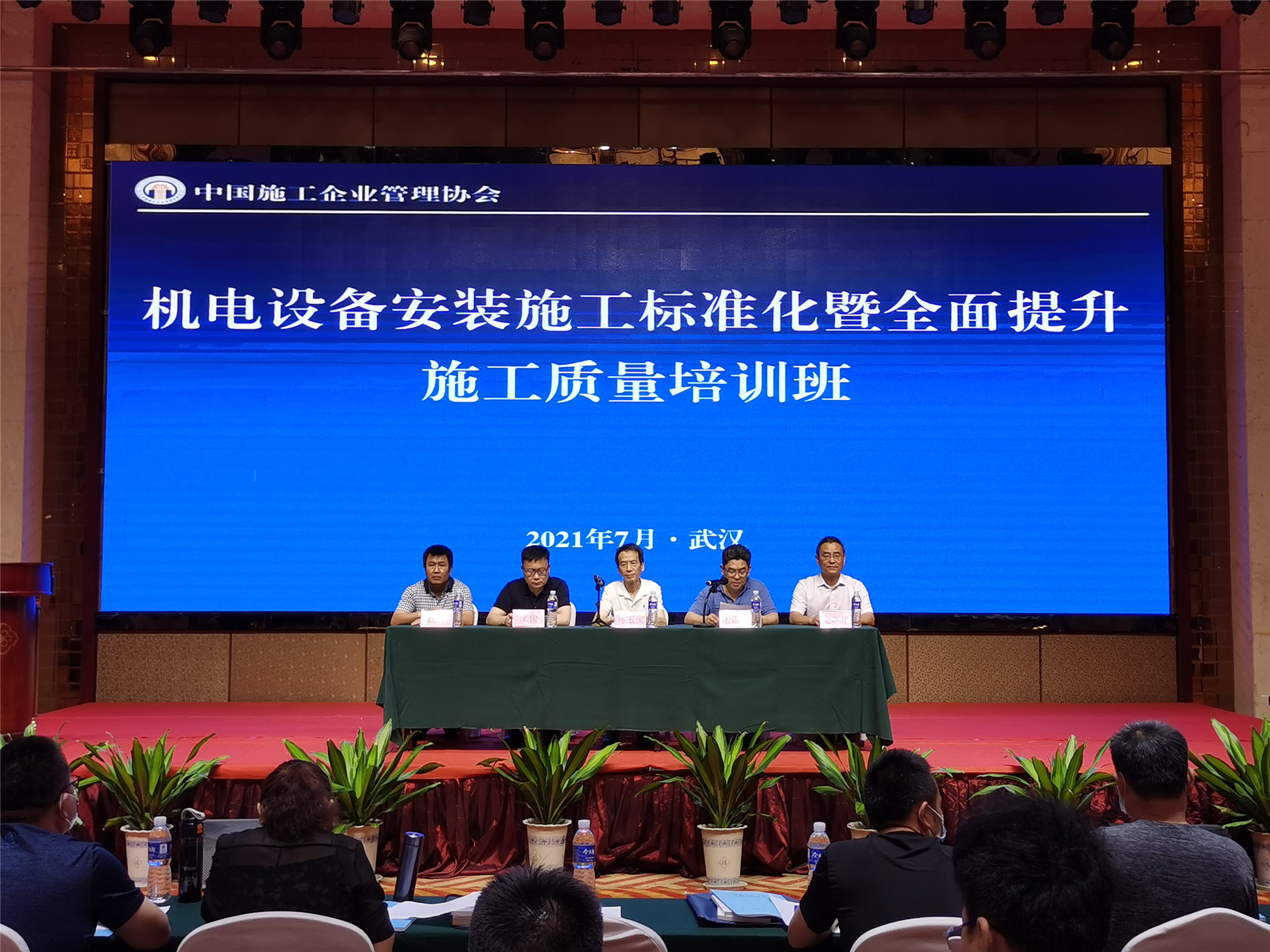 为全面提升工程建设项目施工质量,帮助企业熟练掌握机电设备安装施工标准及应用方法,2021年7月8日至9日,中国施工企业管理协会在武汉举办机电设备安装施工标准化暨全面提升施工质量培训班。来自全国工程建设企业的210余名代表参加培训。中国施工企业管理协会副秘书长马玉宝出席开班仪式并讲话,湖北省建设工程质量安全监督总站副站长徐建军致辞,湖北省建设工程质量安全协会秘书长文俊、授课专家史新华、江仟出席。